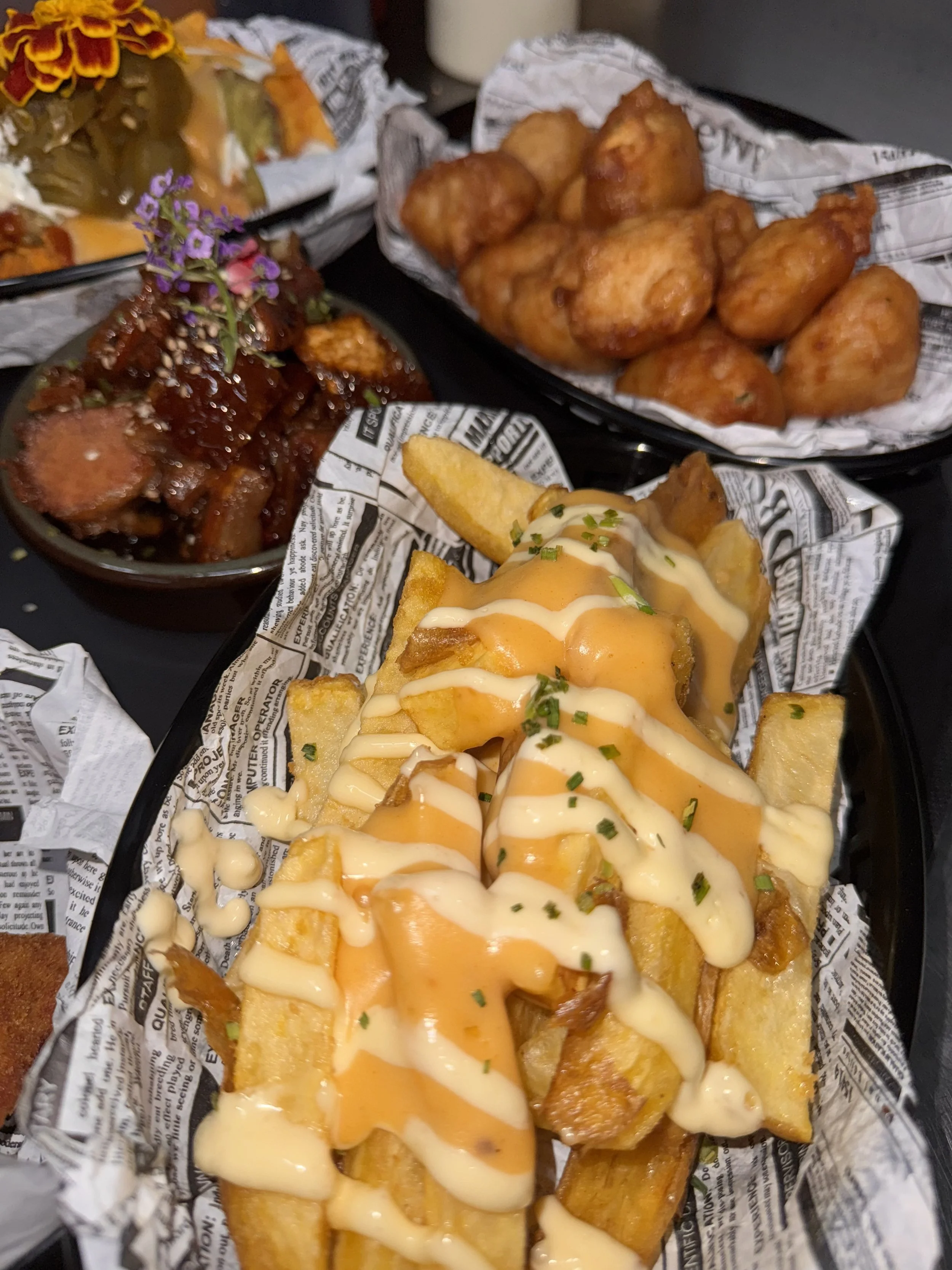 Elavate your evening with our exclusive ViP PACKAGE, designed for those looking to celebrate in style! Enjoy the luxury of VIP seating, a welcome drink to set the tone, and a premium spirit bottle paired with mixers for every five guests. Indulge in our deluxe filled sharing platters with delectable finger foods, such as chicken breast bites, homemade chunky chips, sausages, dips, loaded nachos and halloumi fries.
